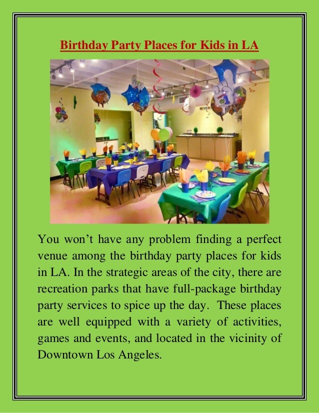 Places In La To Have A Birthday Party. Birthday Parties in Rolling Hills Estates. Here are the best birthday party venues in Los Angeles for adults. Longleaf Birthday Party Venues for Girls.